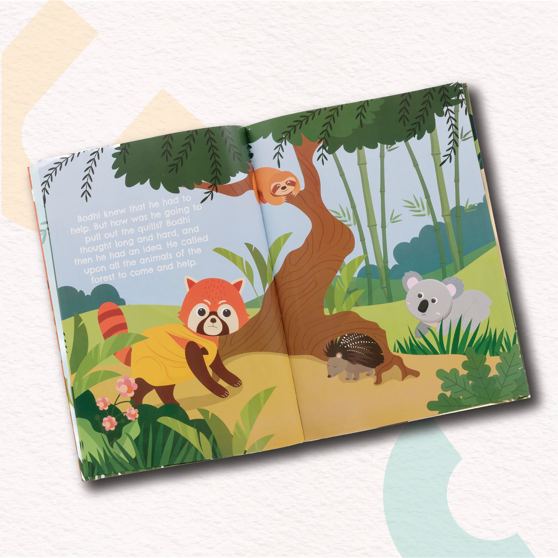 Bodhi the red panda is always too kind. He lives in Arunachal Pradesh and loves to eat bamboo. He helps all the animals around him with his calm and helpful nature. Read this fun, colourful book and enjoy with Bodhi and his friends. The book has a colouring sheet at the end, have your child fill it with their magic.