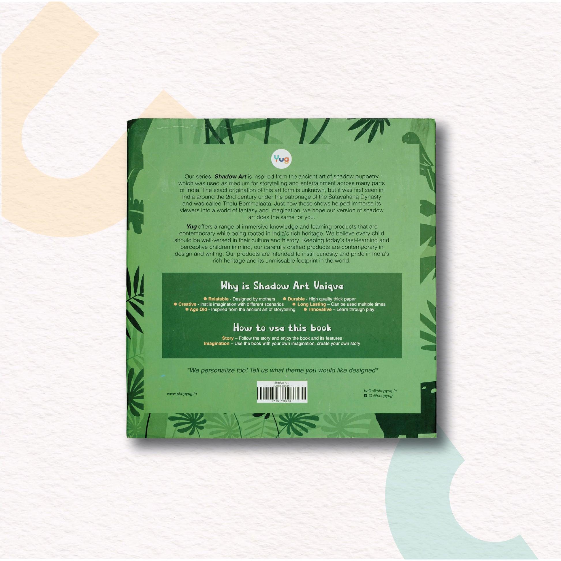 Shadow Art is unique because it is - Relatable - Designed by mothers, Durable - High quality thick paper, Creative - Instils imagination with different scenarios, Long Lasting – Can be used multiple times, Age Old - Inspired from the ancient art of storytelling, Innovative – Learn through play