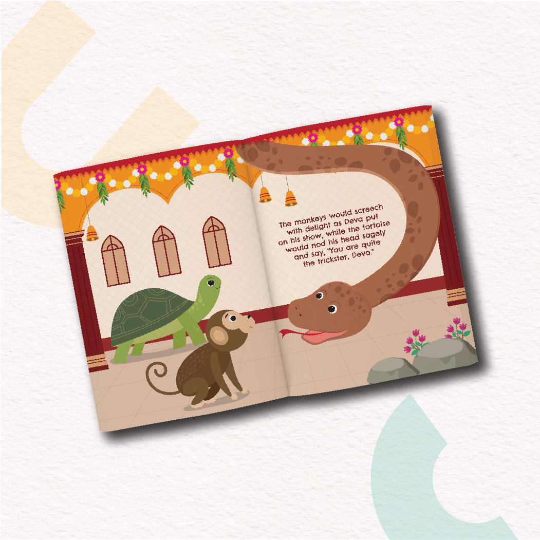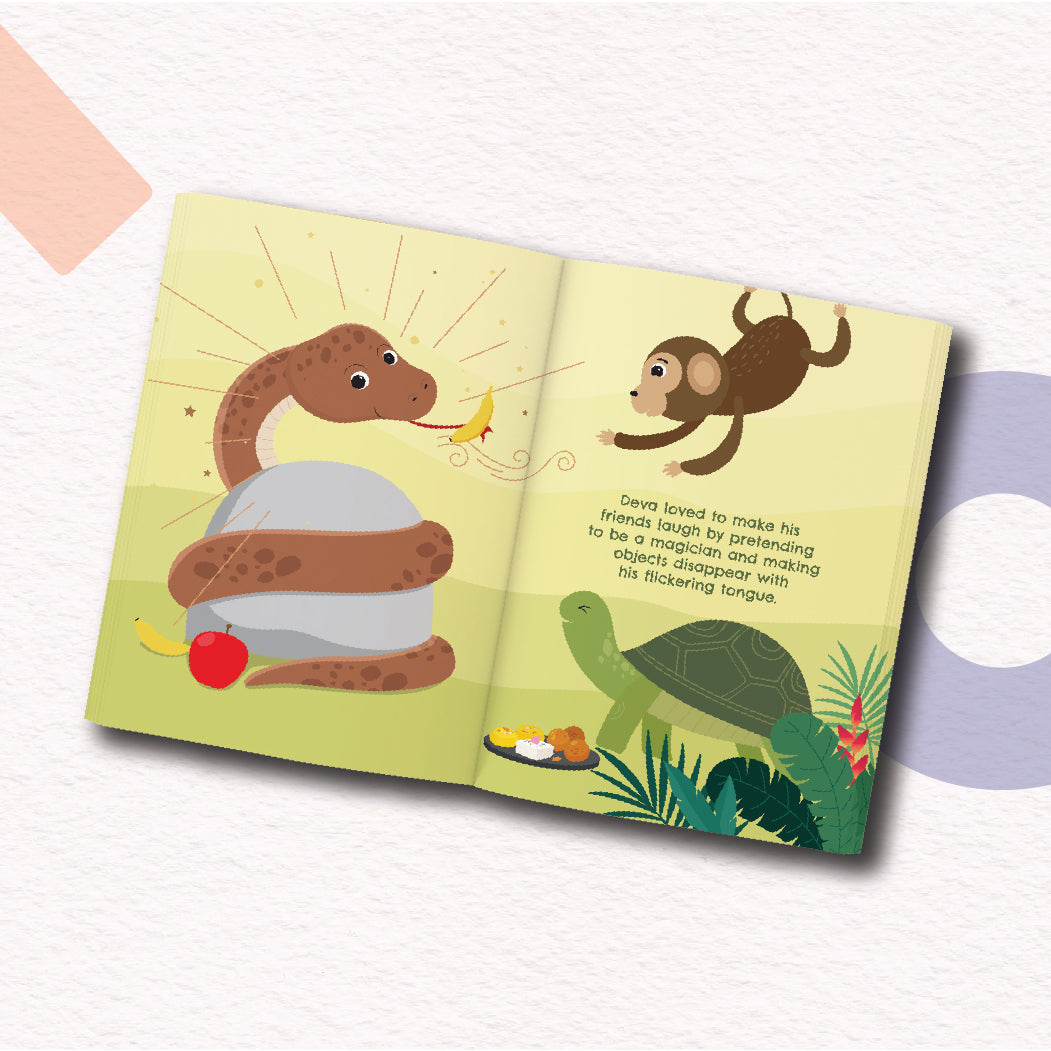 Deva the snake lives in a temple, he is the trick master who makes all the animals laugh but his best quality is his friendship and loyalty to his friends. Read this fun, colourful book and enjoy with Deva and his friends. The book has a colouring sheet at the end, have your child fill it with their magic.