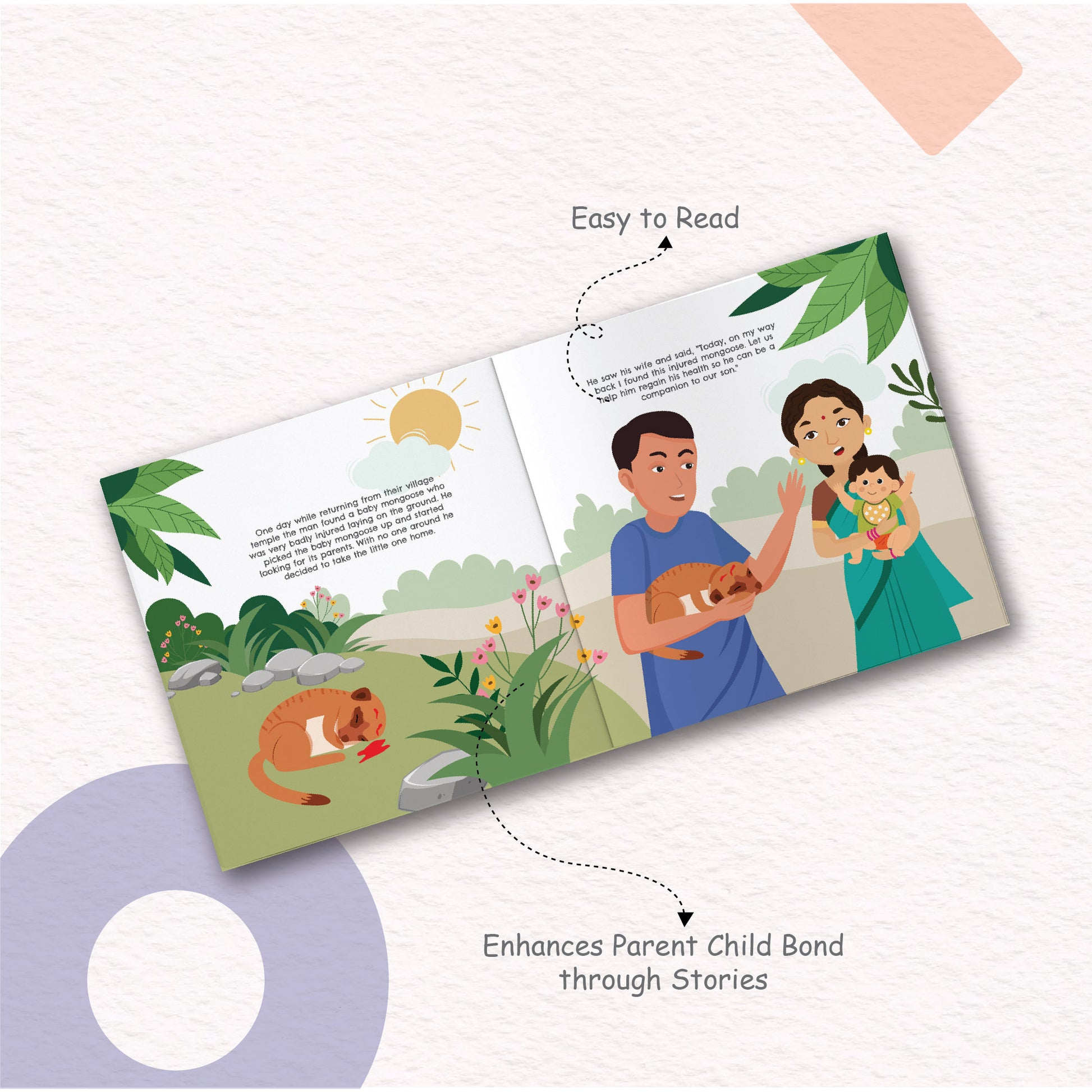 The Loyal Mongoose is an endearing story of a little mongoose and a small baby. The little mongoose protected the little baby at the cost of his life because he loved him dearly. Sometimes we have to trust our instincts and let others in our life, even harmless animals because they can be our best friends. When you love someone and let them in your life they will love you back forever.