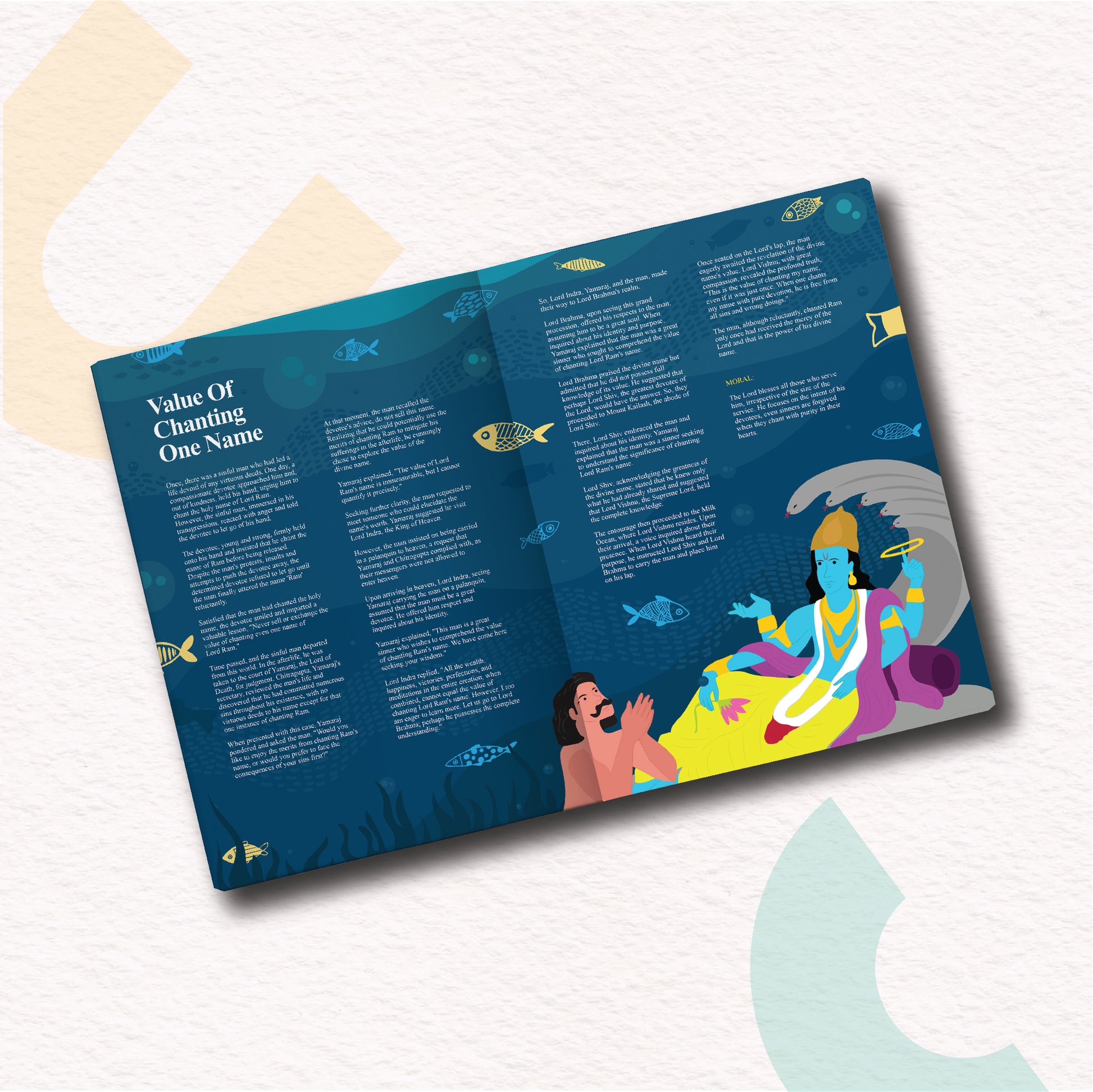 An Illustrated Ramayan which covers the Valmiki Ramayan in 56 pages and 21 chapters. Each has an emotion, shlok and learning.
